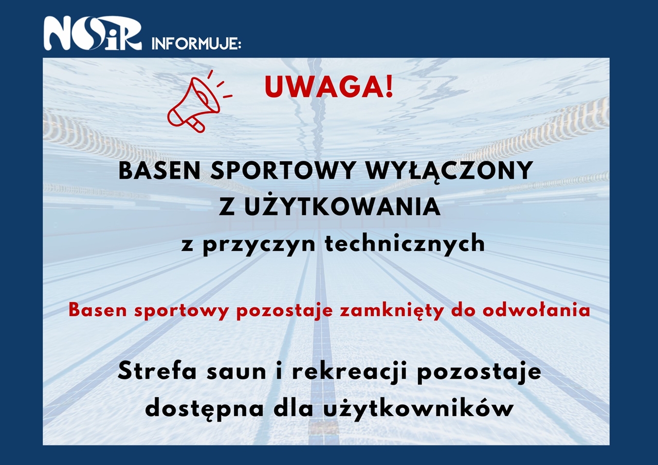 Jak poinformował zarząd obiektu, decyzja ma związek z problemami technicznymi. Z tego powodu basen pozostaje zamknięty do odwołania, a na ten moment nie wskazano konkretnej daty jego ponownego otwarcia. Zamknięcie części sportowej może być szczególnie odczuwalne dla osób regularnie korzystających z torów pływackich, w tym grup treningowych i szkółek pływackich.