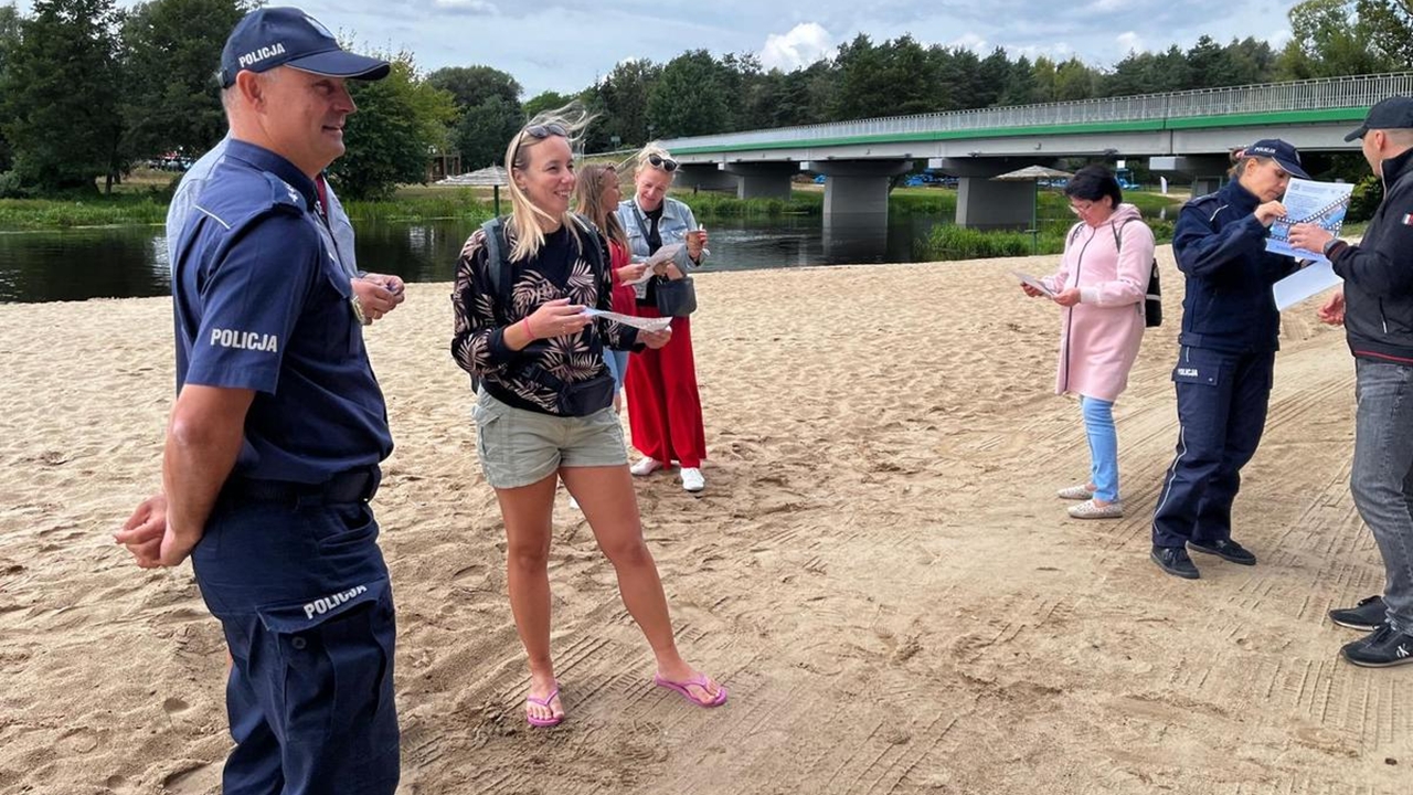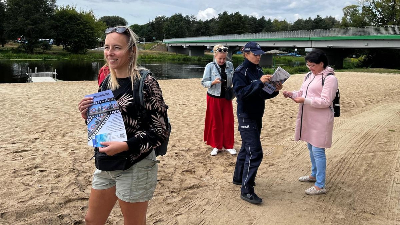Policjanci prewencji kontrolowali plaże i kąpieliska wzdłuż brzegu rzeki Wkry, mając na uwadze bezpieczeństwo osób tam wypoczywających. W ramach ogólnopolskiej akcji „Kręci mnie bezpieczeństwo w lecie” oraz trwającego konkursu dla dzieci i młodzieży pn „LETNI przeWODNIK”, prowadzili rozmowy na temat odpowiedzialnego i bezpiecznego korzystania z akwenów wodnych. Uczestnicy otrzymali ulotki informacyjne z zasadami do których trzeba się stosować, aby wypoczynek nad wodą spędzony był w sposób przyjemny i rozsądny.