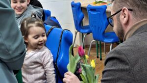 Na uczestniczki czekały bukiety kwiatów oraz serdeczne życzenia, które osobiście złożyli Burmistrz Nowego Dworu Mazowieckiego Sebastian Sosiński oraz jego Zastępca Bartosz Rogiński. Ich obecność podkreśliła rangę wydarzenia i serdeczną atmosferę całego wieczoru.