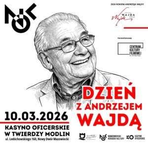 Kasyno Oficerskie w Twierdzy Modlin oraz Nowodworski Ośrodek Kultury zapraszają na „Dzień z Andrzejem Wajdą”. Wydarzenie odbędzie się 10 marca 2026 roku w budynku przy ul. Ledóchowskiego 160 w Nowy Dwór Mazowiecki. Organizatorzy przygotowali dwa pokazy filmowe, prelekcje oraz wystawę fotografii z planów filmowych reżysera. Wstęp na wszystkie wydarzenia jest bezpłatny.