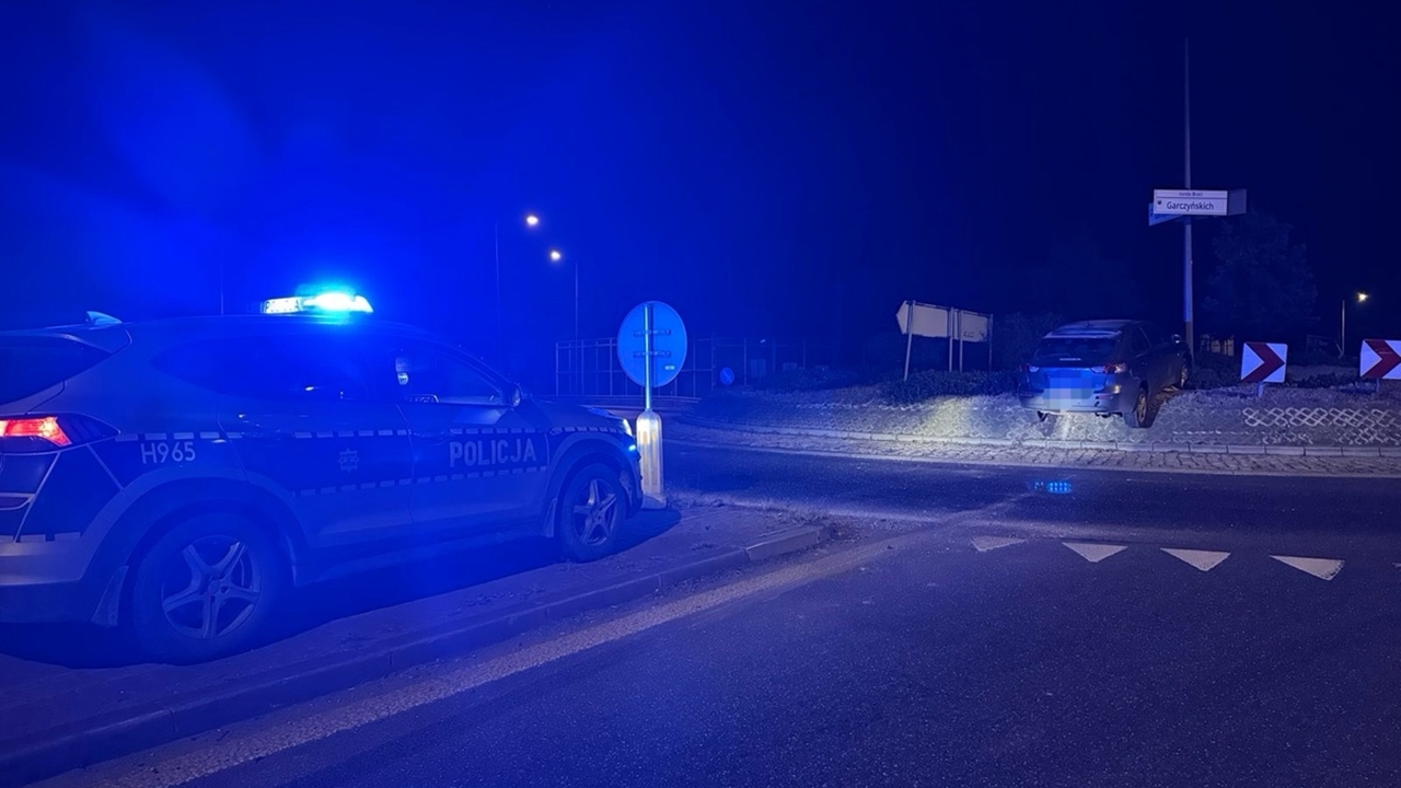 Nietrzeźwy kierowca uderzył w wyspę na rondzie i oddalił się z miejsca. Później zwrócił się do policjanta z absurdalną prośbą… Teraz grozi mu do 3 lat pozbawienia wolności.