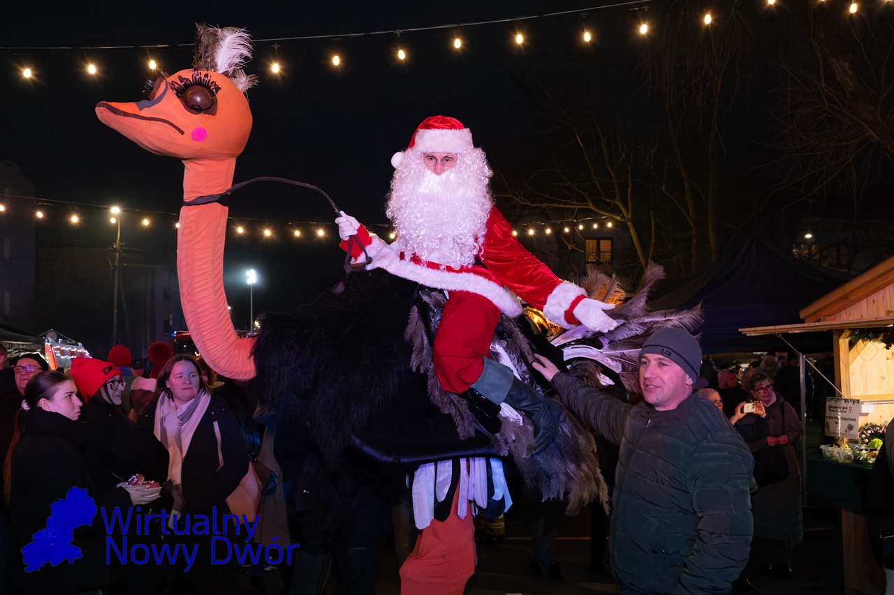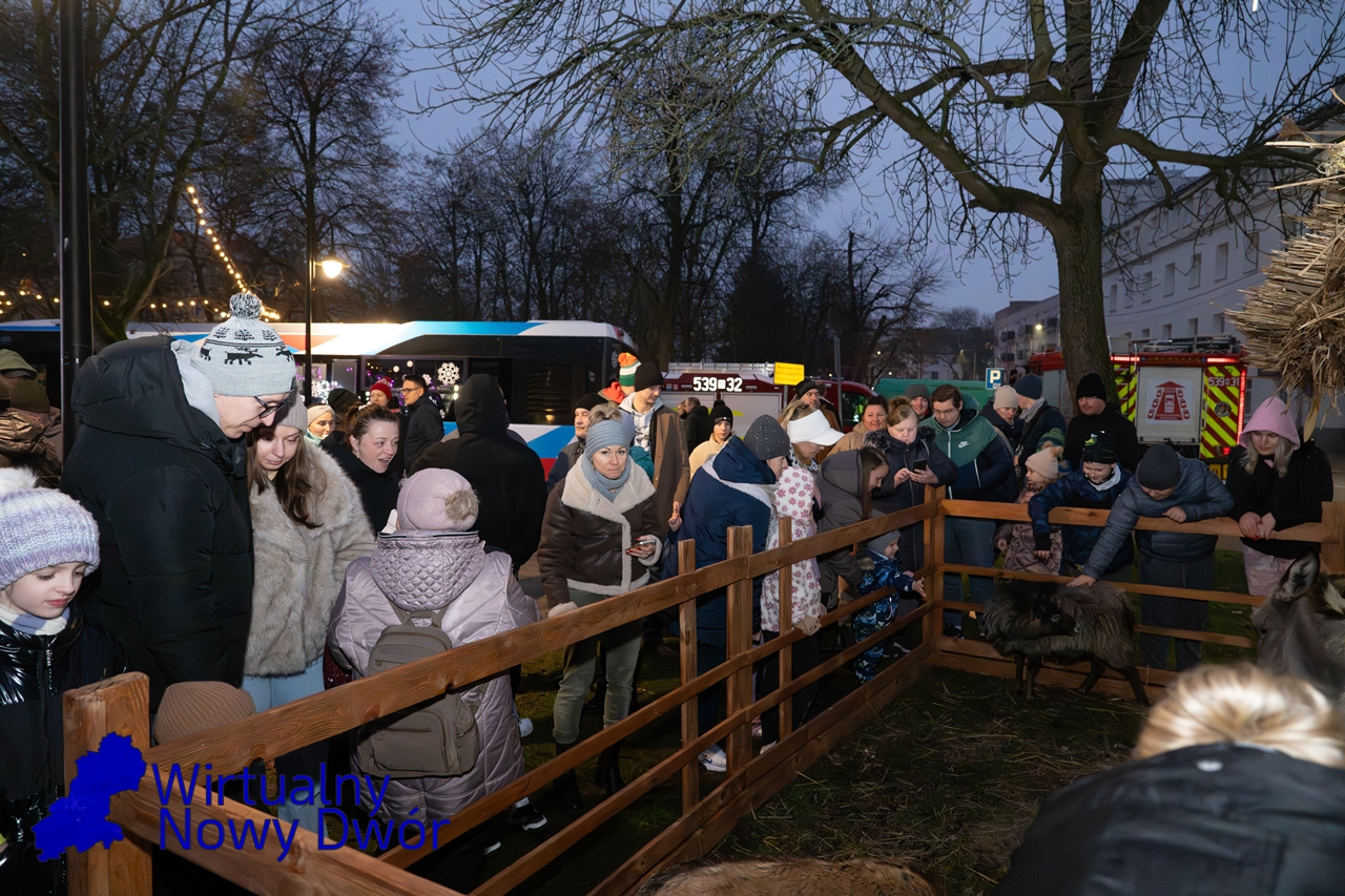 Na uczestników czekały m.in. kreatywne warsztaty i animacje, żywa szopka, fotobudka, karuzela, świąteczny autobus z wspólnym pleceniem łańcucha na choinkę, spektakl teatralny, a także energetyczny koncert BUM BUM ORKeSTAR. Ważnym momentem było również wręczenie nagród w konkursie na Nowodworską Kartkę Bożonarodzeniową oraz przekazanie Betlejemskiego Światła Pokoju, przypominającego o tym, co w Świętach najważniejsze.