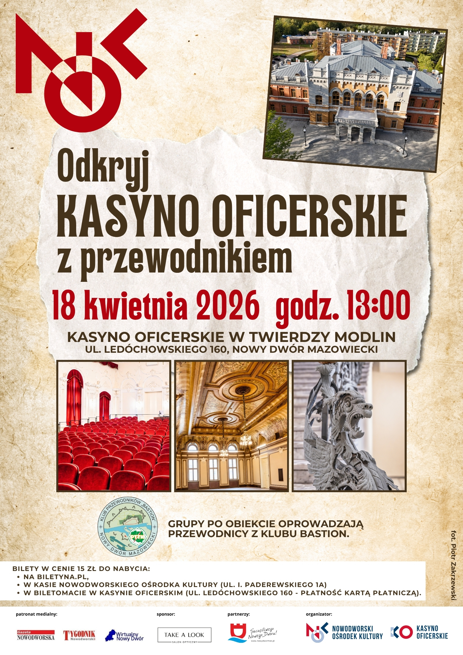 Nowodworski Ośrodek Kultury zaprasza na kolejne zwiedzanie zabytkowego Kasyna Oficerskiego w Twierdzy Modlin z przewodnikiem. To doskonała okazja, aby poznać historię jednego z najpiękniejszych budynków w okolicy i zobaczyć jego niezwykłe wnętrza.
