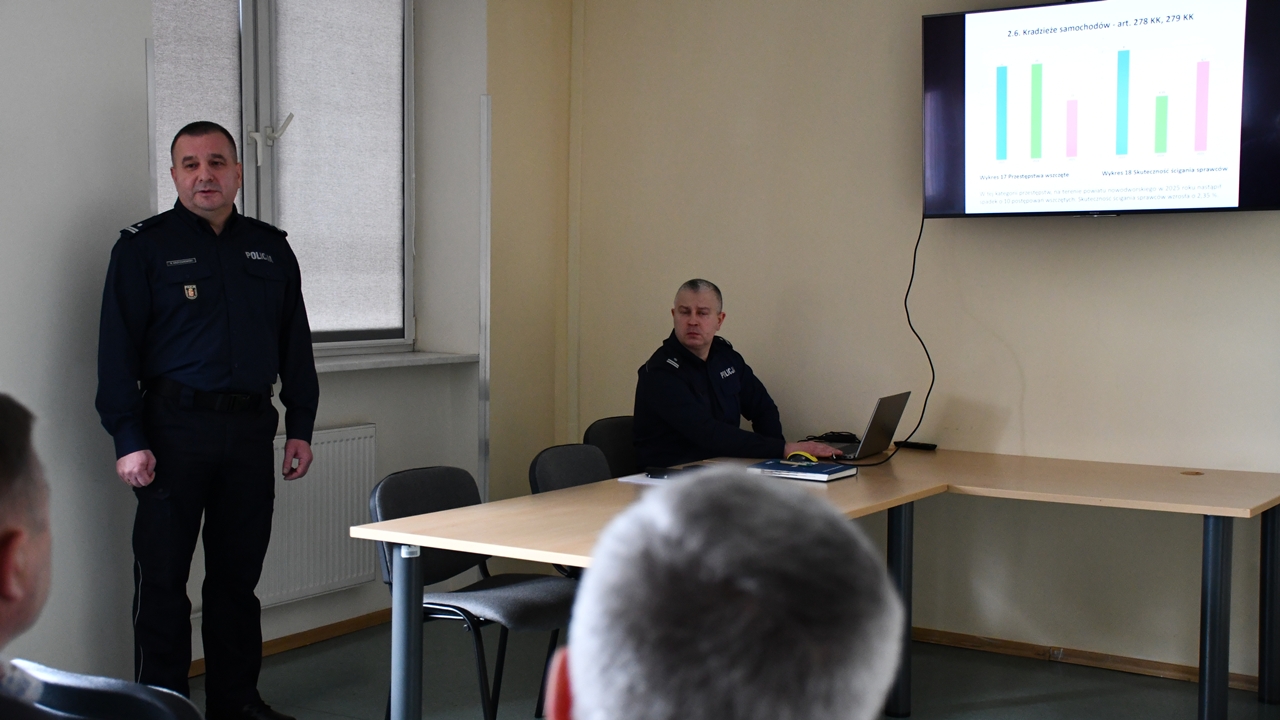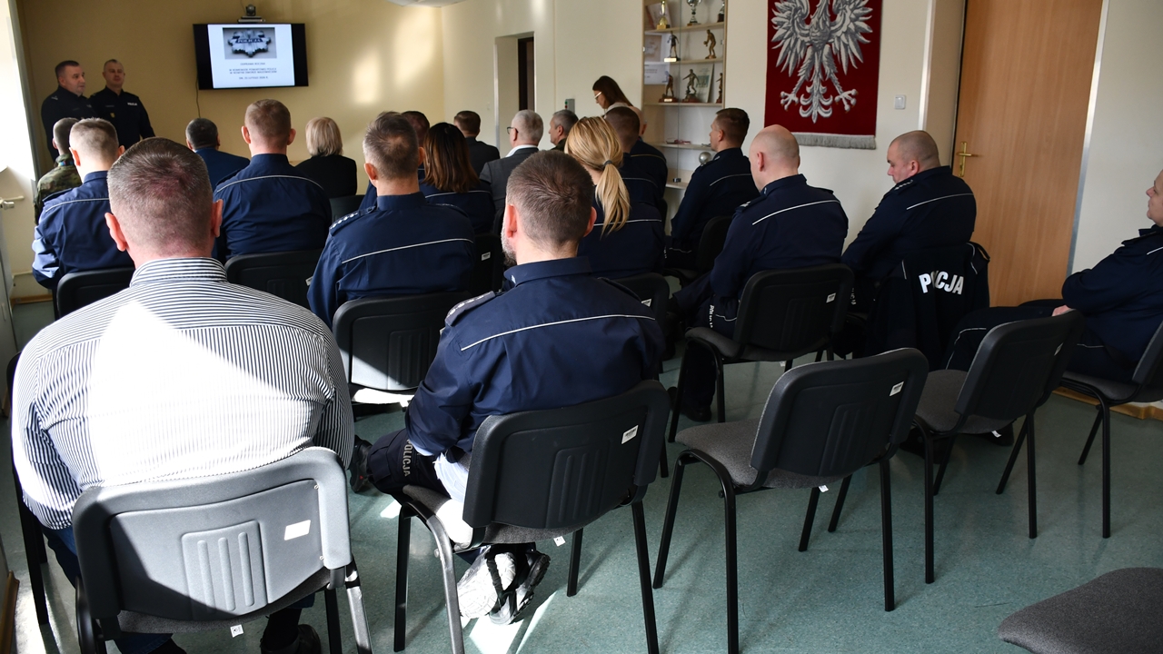 W kolejnej części swojego wystąpienia Komendant przedstawił wyniki pracy funkcjonariuszy Wydziału Prewencji oraz Wydziału Ruchu Drogowego. Podkreślił skuteczność działań prewencyjnych oraz podejmowane czynności w zakresie zapewnienia bezpieczeństwa na drogach.