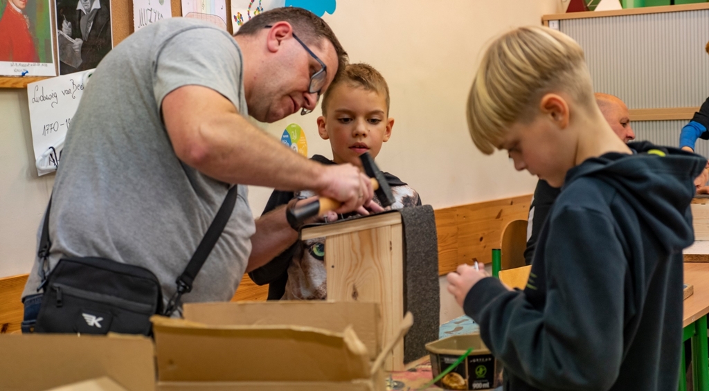 Serdecznie dziękujemy wszystkim rodzicom i opiekunom za udział w warsztatach, wspólną pracę i wzorowe wykonanie budek. Mamy nadzieję, że uczestnicy miło i rodzinne spędzili czas, a u najmłodszych uczestników wzrośnie świadomość ekologiczna oraz empatia dla zwierząt