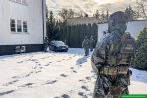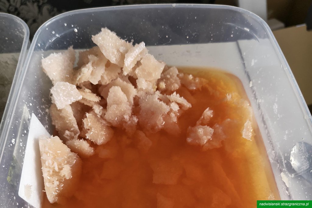 Funkcjonariusze Nadwiślańskiego Oddziału Straży Granicznej rozbili profesjonalne laboratorium narkotyków syntetycznych działające na jednej ze stołecznych posesji. W trakcie realizacji zabezpieczono blisko 18 kilogramów wysokiej jakości mefedronu o czarnorynkowej wartości około 1,5 mln złotych oraz kilkaset litrów komponentów chemicznych służących do jego produkcji. Na gorącym uczynku zatrzymano dwóch obywateli Ukrainy.