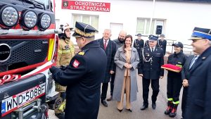 W dalszej kolejności odczytany został akt przekazania pojazdu, a kluczyki do nowego samochodu wręczono prezesowi OSP Leoncin – druhowi Andrzejowi Krawczakowi.