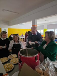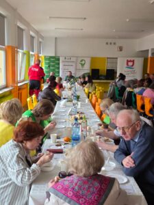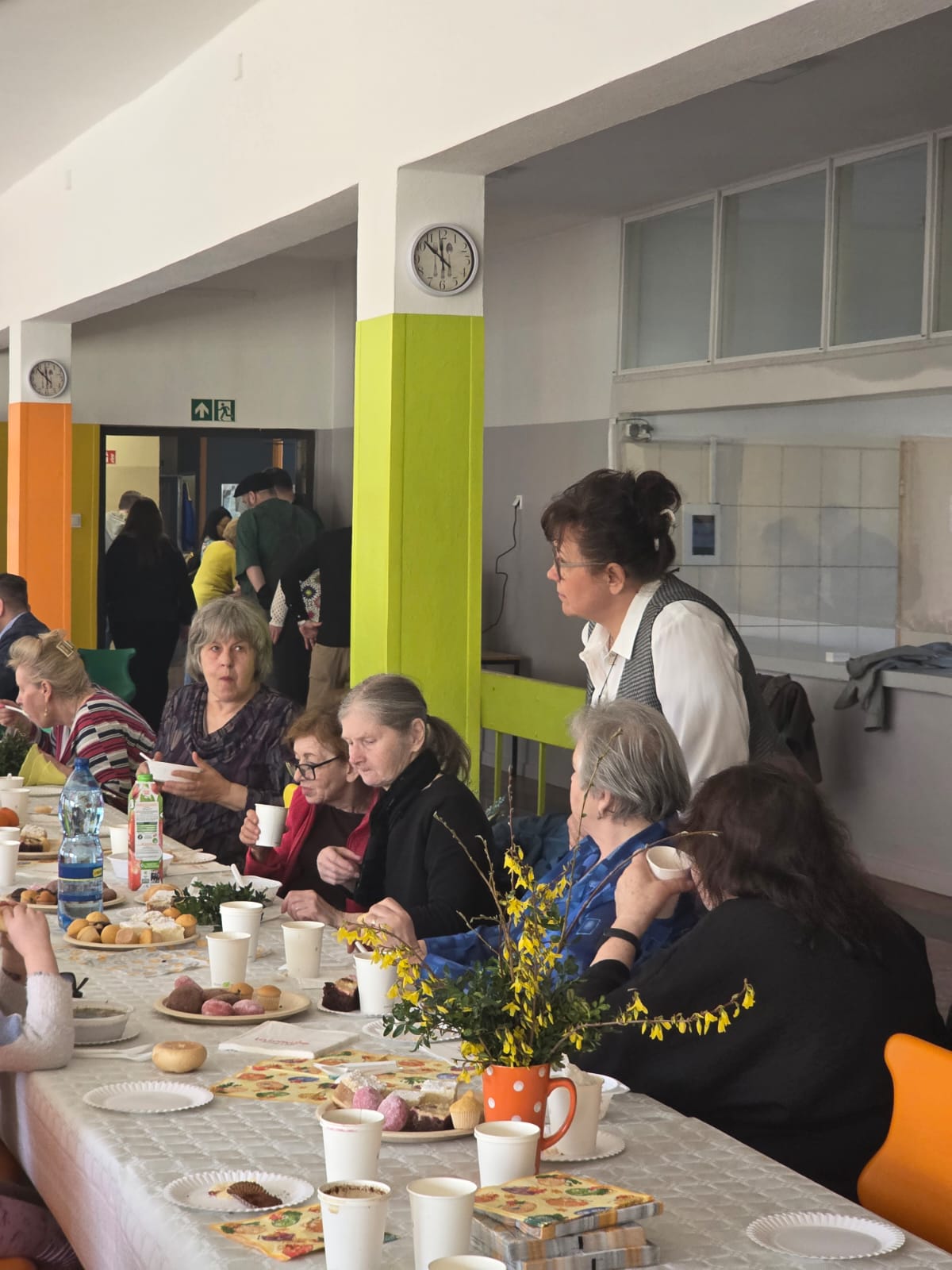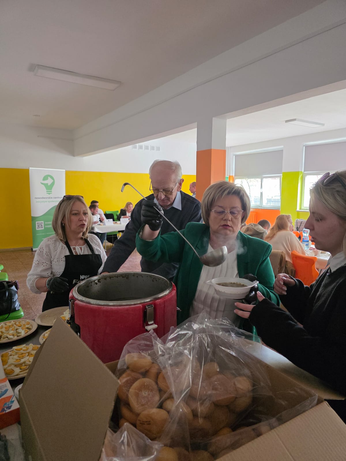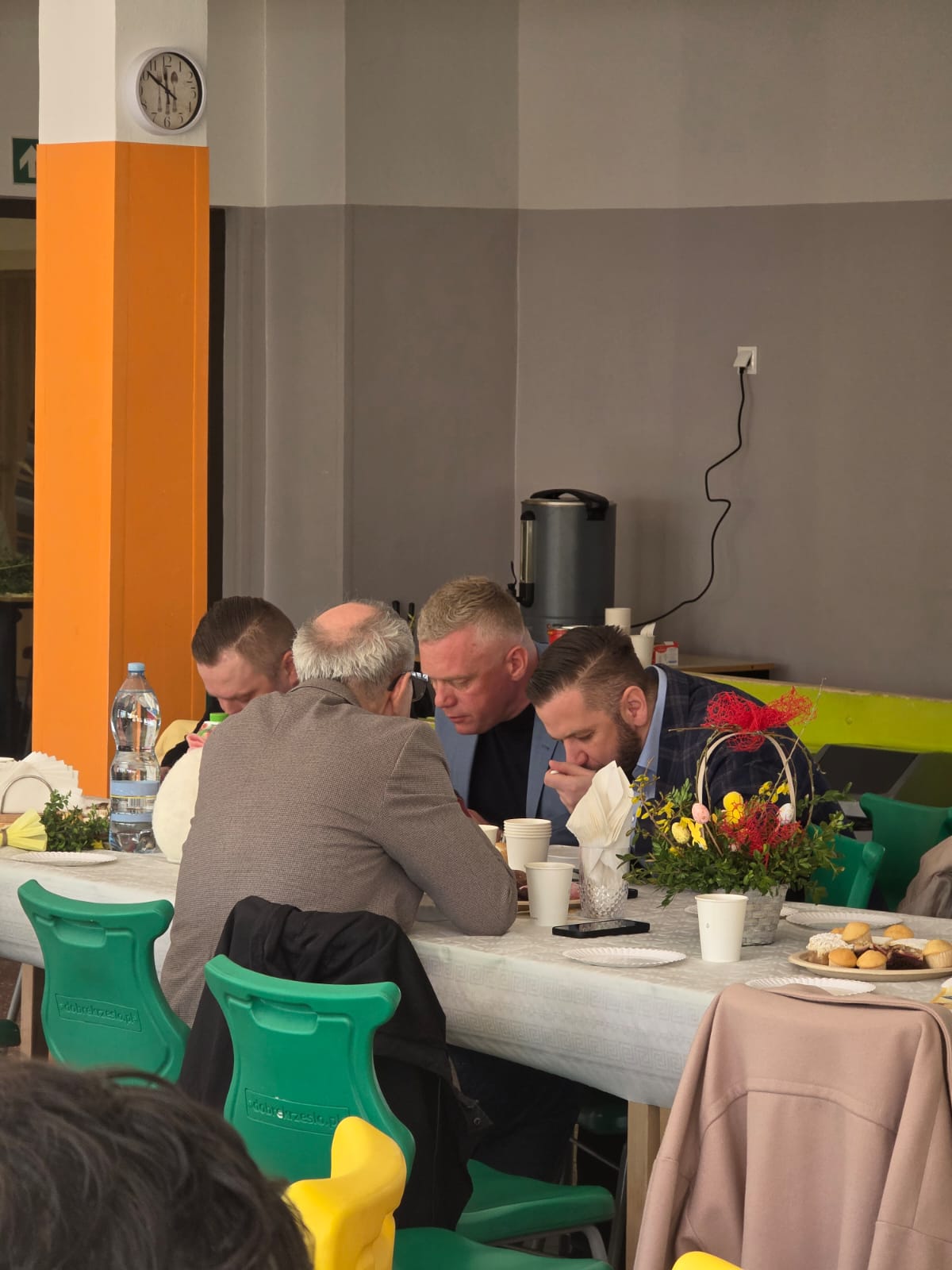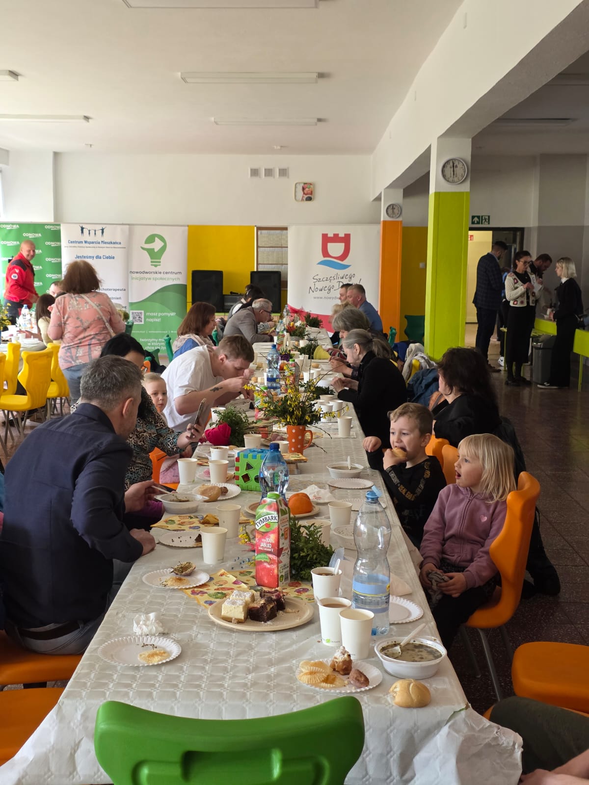 Spotkanie zorganizowano w stołówce Szkoła Podstawowa nr 5 w Nowym Dworze Mazowieckim i już od pierwszych minut było widać, że nie jest to zwykłe wydarzenie. Zamiast oficjalnych przemówień dominowały uśmiechy, serdeczne powitania i rozmowy przy wspólnym stole.