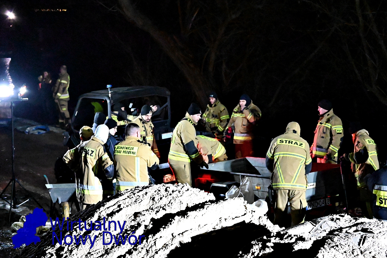 Na miejscu obecni są również przedstawiciele kierownictwa służb ratowniczych, w tym komendant powiatowy Państwowej Stray Pożarnej w Nowym Dworze Mazowieckim, dowódca Jednostki Ratowniczo-Gaśniczej oraz naczelnik Wydziału Operacyjnego. Koordynują oni działania wszystkich zaangażowanych sił.