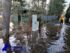 Woda wdarła się na teren kilku posesji przy ulicy Słowiańskiej, powodując lokalne podtopienia i zagrożenie dla mieszkańców. Na miejsce natychmiast skierowano zastępy Państwowej i Ochotniczej Straży Pożarnej, które prowadzą intensywne działania zabezpieczające.